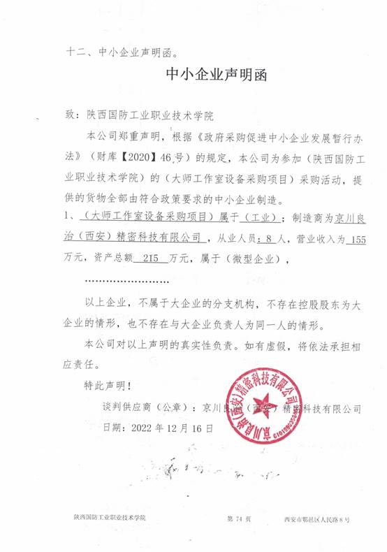 成交单位:京川良治(西安)精密科技有限公司(小微企业)