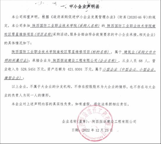 成交单位:陕西恒途建设工程有限公司