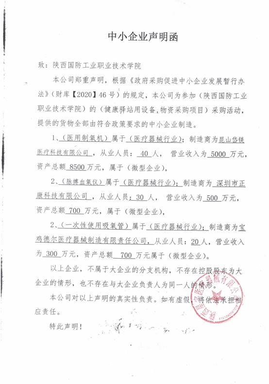 成交单位:陕西星宇医疗器械有限公司(小微企业)