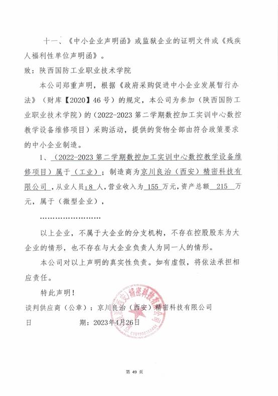 成交单位:京川良治(西安)精密科技有限公司