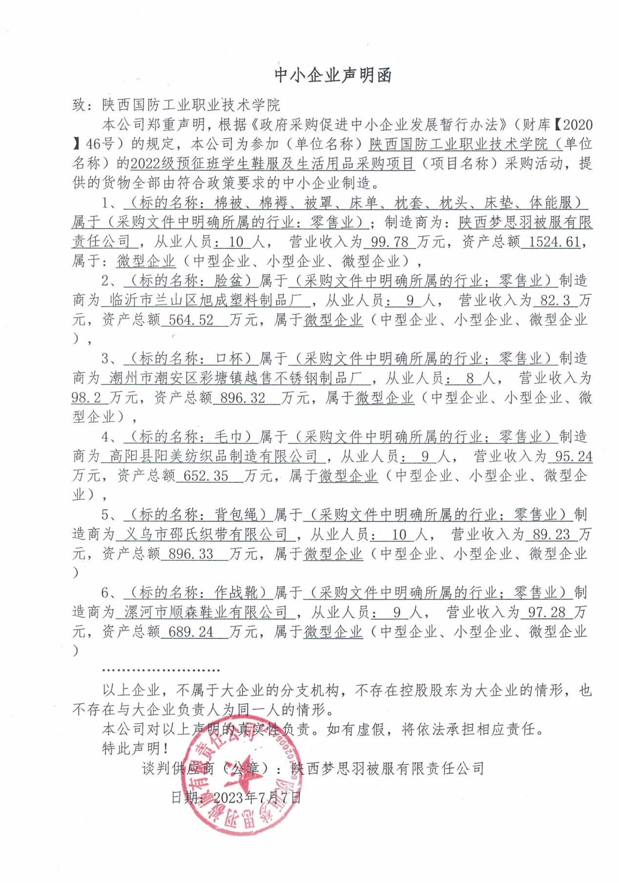 betway必威中文正版2022级预征班学生鞋服及生活用品采购项目经主管领导审批,按照相关采购程序,本项目于2023年7月7日9:00在betway必威中文正版图书楼9-502室召开采购会议,根据评审小组评审结论,现将成交结果公告如下: