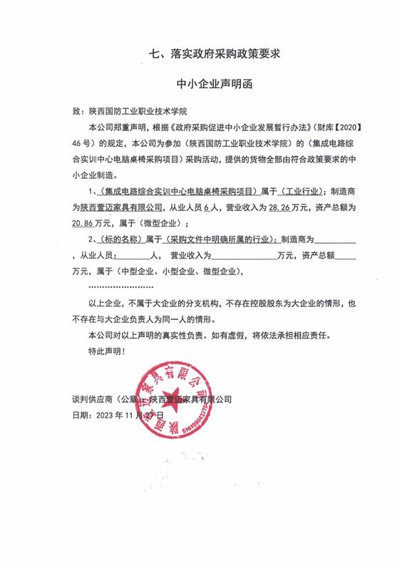 一、采购项目名称:集成电路综合实训中心电脑桌椅采购项目