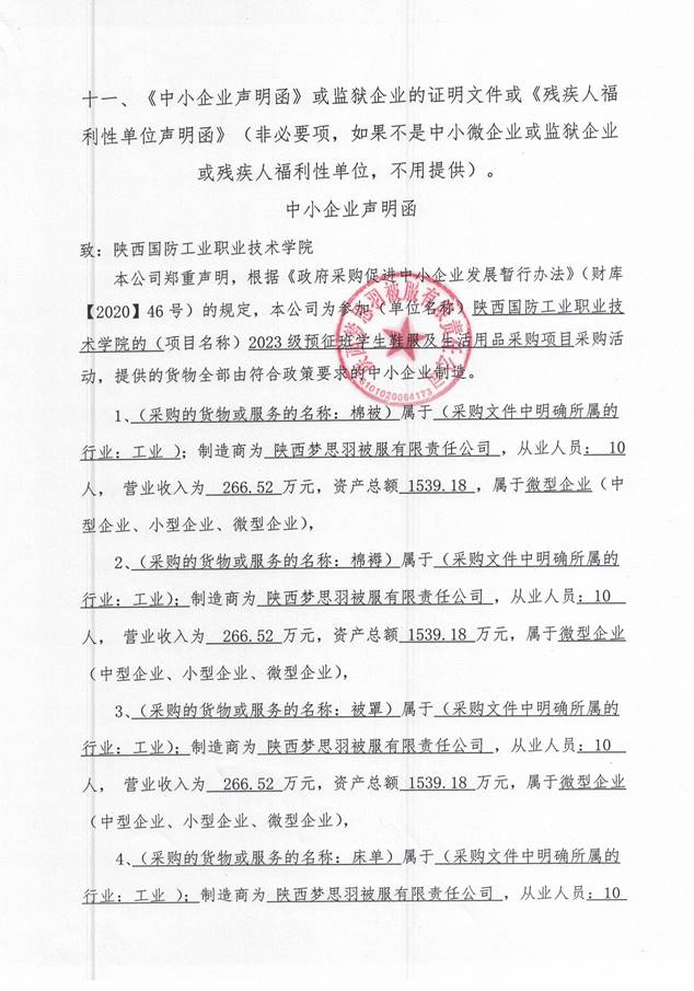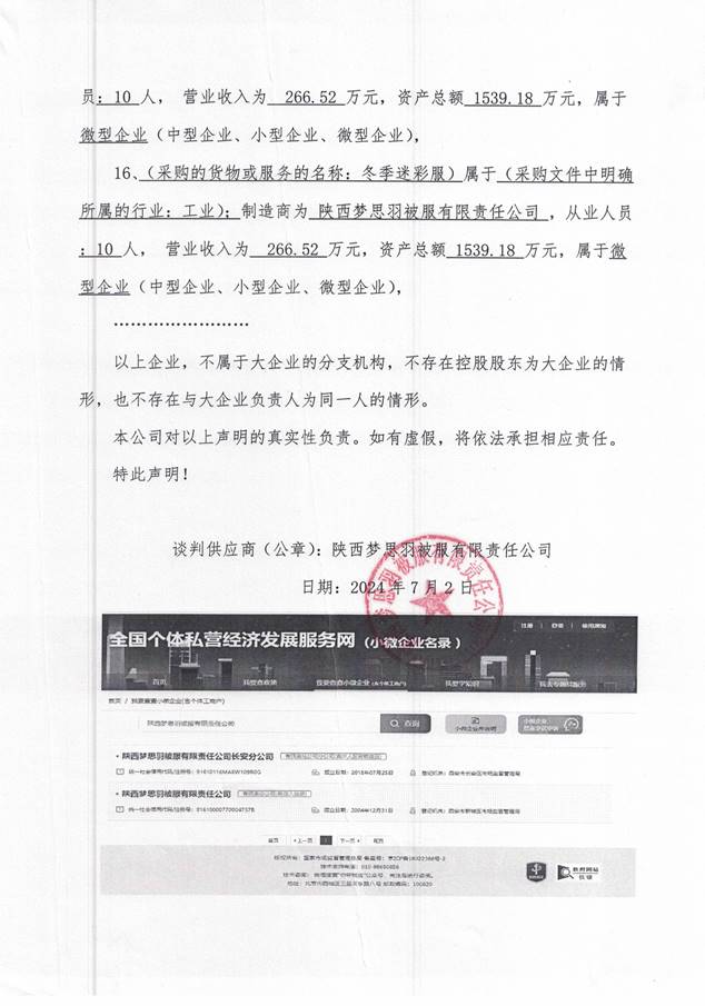 供应商名称:陕西梦思羽被服有限责任公司