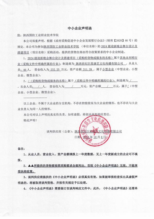 供应商名称:陕西世纪巨星演艺文化传播有限公司