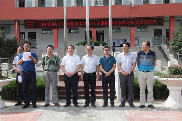 ——赴宁强县开展对接帮扶助力脱贫攻坚工作。2017年5月9日下午,该院副院长杨聪带队赴汉中市宁强县开展高校帮扶贫困县助力脱贫攻坚对接工作。双方基本达成了“以扶技扶智扶产业为方向,以人才培养和技术培训为主要方式”的帮扶工作思路。在支持职教中心发展、贫困学生帮扶、教学设备支持、建档立卡贫困户毕业生安置就业、偏远学校基础设施建设、师资培训、特色产业发展、创业扶持、贫困劳动力就业等10个方面达成初步共识。6月22日,该院宁强特色扶贫培训启动仪式在宁强职教中心举行。该院副院长杨聪一行5人,宁强县教体局局长付祥武,教育工会主席郑树东等领导同志出席特色扶贫启动仪式。