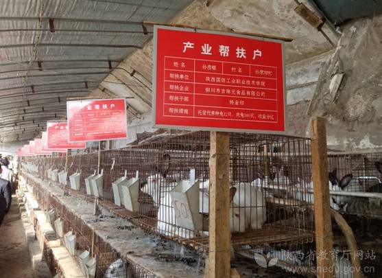 ——产业帮扶,促进建档立卡户脱贫。2017年8月30日,该院党委书记张卫平一行实地走访了王家河街道办建档立卡贫困户,并为每户送上了慰问金1000元。通过实地调研,经学院党委研究决定,委托铜川市吉瑞元食品有限公司在辖区内选取周家河村柳德富等14户无劳动能力贫困户签订了托管代养帮扶协议,学院出资14万元帮助贫困户发展种兔养殖,针对贫困户的家庭实际和所需帮扶的生活困难问题,通过“公司+基地+农户”托管代养模式带动贫困户参与产业发展,根据养殖收益给贫困户分红,切实增加贫困户收入,实现精准脱贫。