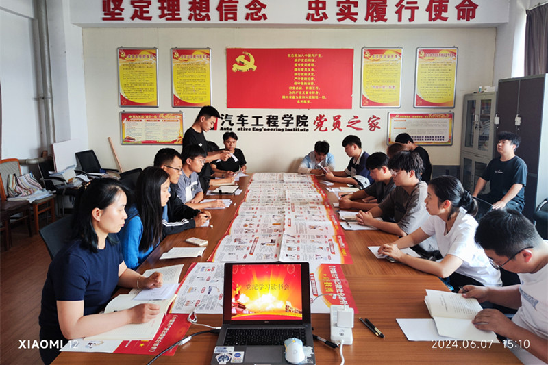 为深化党性教育与纪律观念,进一步推动党纪学习走深走实,6月7日下午,汽车工程学院学生党支部成功举办了一场党纪学习读书会,旨在通过深入学习党的纪律和规矩,提升学生党员的党性修养和纪律意识,推动学生党支部工作向更高水平发展。汽车工程学院学生党支部全体师生党员和重点培养对象参加了此次学习。