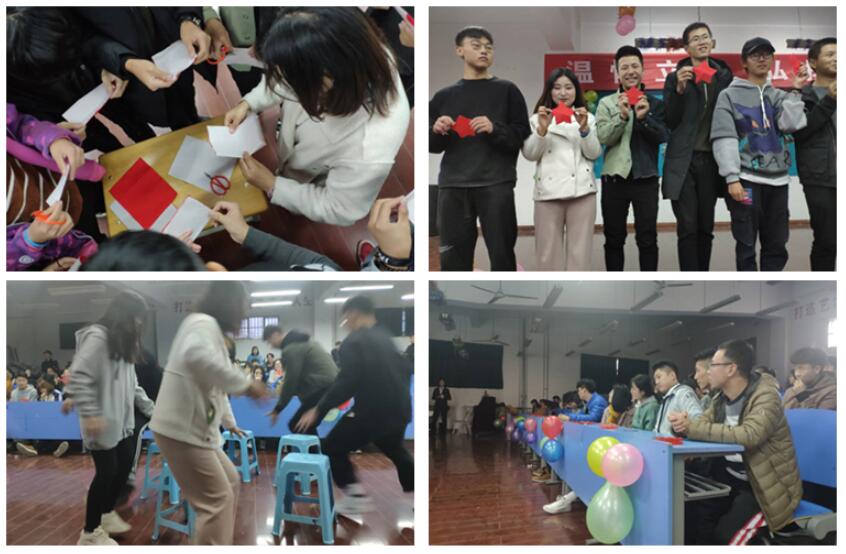 此次活动包括两个部分。第一部分由剪纸协会带来的剪纸创作展示,让在场学生对剪纸艺术有所认知和了解,由此对中国传统文化产生兴趣,培养民族自豪感与文化自觉性。第二部分为趣味游戏环节,即歌王猜猜猜、抢占先机和幸运盒子。通过趣味游戏进一步促进了不同院部同学之间的情感交流以及提高团队相互之间的合作精神,展现了大学生的青春与活力。