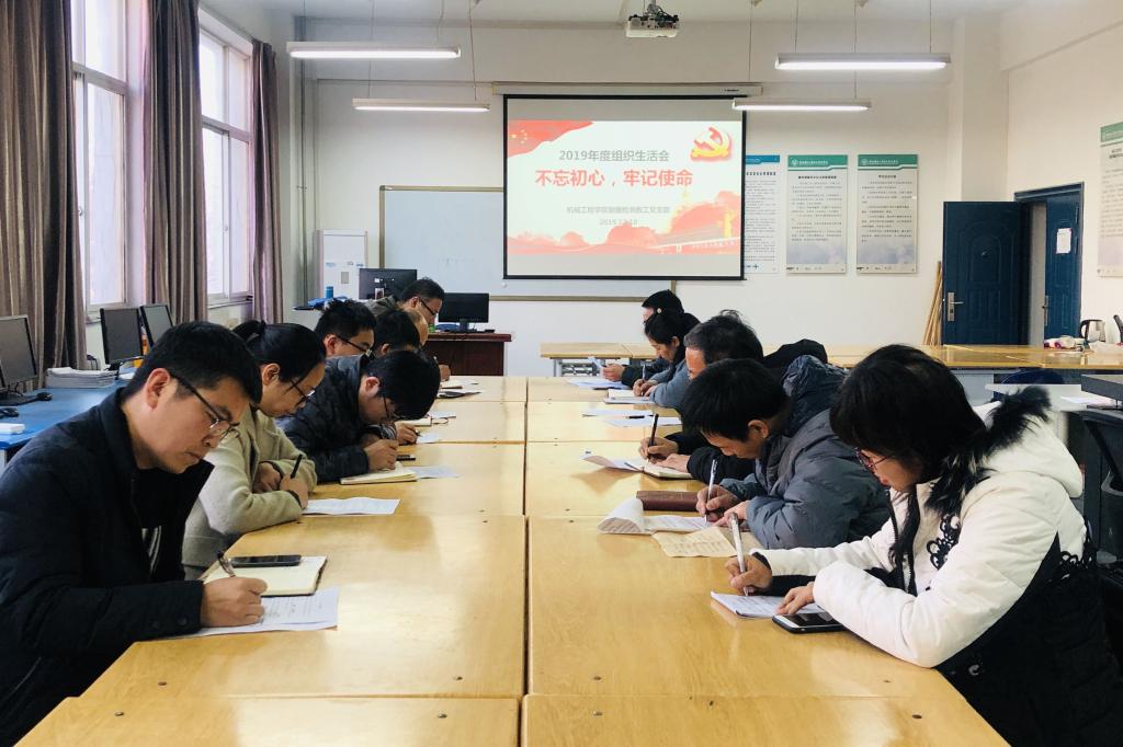 根据我院“不忘初心,牢记使命”主题教育实施方案通知要求,2019年12月10日下午,机械工程学院制图检测教工党支部在10-204召开了2019年度“不忘初心,牢记使命”主题教育专题组织生活会,全体支部党员按时参加,结合自身实际,进行自查自纠,开展批评与自我批评。会议由支部书记党威武主持。