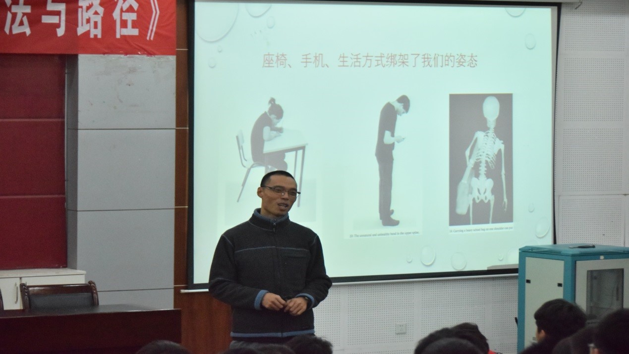 李山教授从不良体态矫正、关节链对健身的启示、六项功能动作练习、有效减脂塑身、正确跑步的技术与锻炼方法以及基本健身原则等几个方面进行讲授。讲授内容丰富,既有理论又有实践,针对性强,对于全面落实教育部办公厅《关于开展“师生健康中国健康”主题健康教育活动的通知》(教体艺厅函〔2018〕10 号)精神,引导学生树立正确健康观,养成良好的生活方式和行为习惯,促进学生科学锻炼,在全校广大师生中牢固树立“健康第一”的思想理念,把健康教育、科学锻炼融入到学校体育教育教学各个环节起到了很大的促进作用。