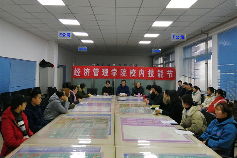 12月24日下午,经济管理学院在沙盘实训室举办2019-2020学年校内技能大赛启动仪式。经管学院院长严长远教授,黄志宏教授,千彦教授,校企合作处主任王珊珊,经管学院办公室主任潘浩、教学科科长郑振峰,教研室主任吴夏妮、白琳、宋传祥以及张琼、刘莹、谈笑、杨博、徐松、郭媛媛等相关老师和学生代表参加。