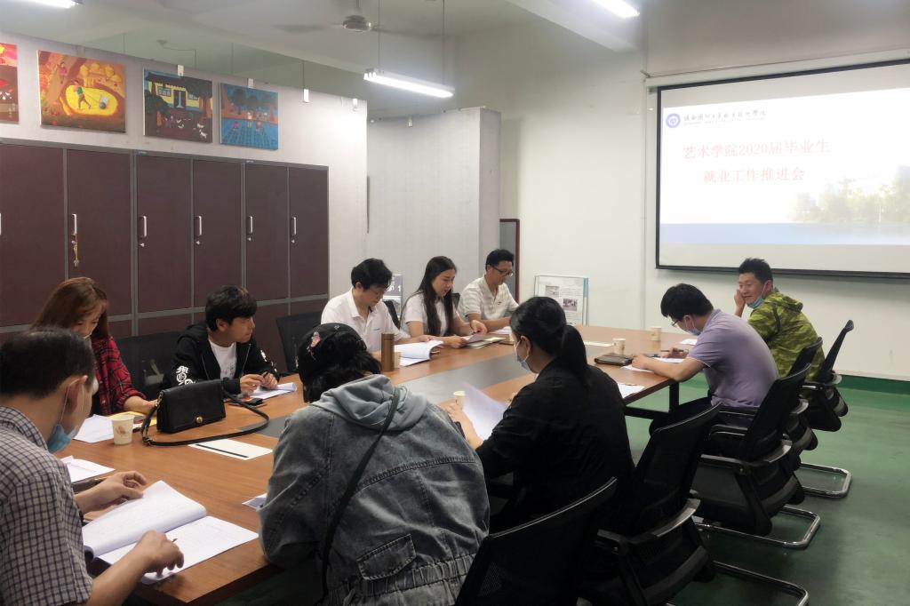随后,学生科老师王志刚对目前学院2020届毕业生的就业情况及就业率作了通报,解读《艺术学院关于进一步做好当前毕业生就业工作的实施方案》,对下一阶段的具体工作做以安排部署。期间全体参会人员就如何开展就业帮扶、开拓就业市场、促进学生就业进行了深入交流。