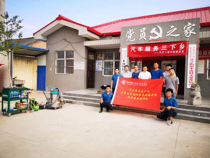根据我校2020年志愿者暑期“三下乡”社会实践活动的通知安排,引导我院学生将理论知识与社会实践相结合,积极响应“万名学子扶千村”服务助力脱贫攻坚专项实践活动,鼓励学生到基层去“勤锻炼、长才能、做贡献”,助力地方产业发展,力所能及地帮助群众解决实际困难。为此,在学校团委的大力支持和帮助下,汽车工程学院团学组织和以汽车服务协会为主体的暑期“汽车服务宣传队”在汽车学院党总支书记史朝辉的带领下,于7月30日在甘亭镇木南村村委会前开展了以“汽车服务”为主的暑期三下乡社会实践系列活动。
