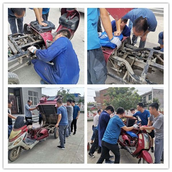 活动当天,每一位老师和同学都尽心尽力的做好自己的本职工作,义务服务队的队员们热心周到的服务和良好的技术水平让当地群众都放心的将家里的各种农用车辆推出来交到同学们的手中,大到家用小轿车,农用三摩车,电动三轮车,小到家用电动车等。服务队的队员们忙得不亦乐乎,对于现场无法解决的问题,带队老师和同学细心的给村民们讲解了电器的原理,需要调换的零部件以及需要的花费等。