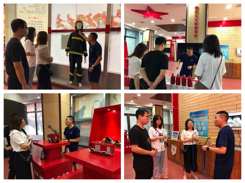 在讲解员的带领和指导下,老师们学习和体验了火灾隐患排查系统、VR消防员体感系统、模拟灭火体验系统、模拟烟雾逃生通道、结绳逃生自救等多个单元,并与相关负责人进行了深入的交流。
