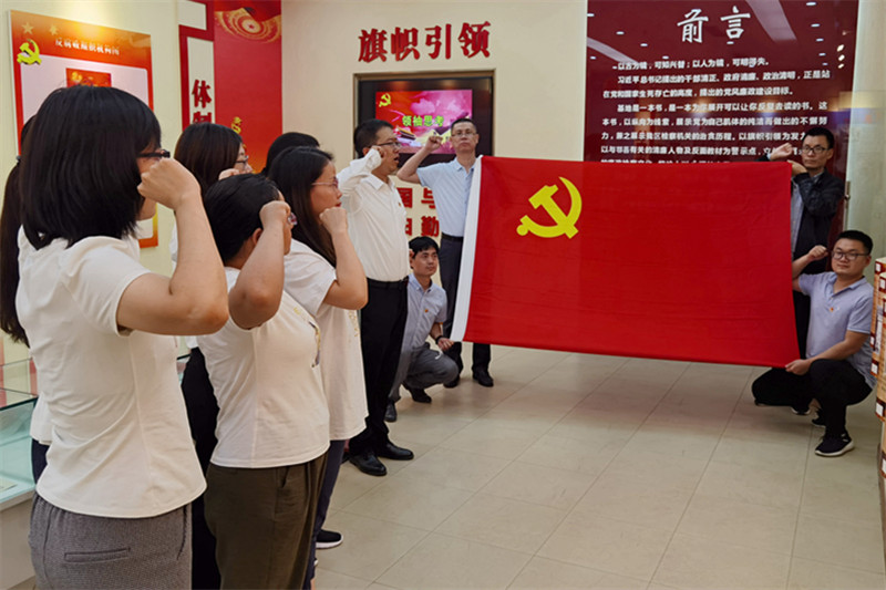 在讲解员的引导下,全体党员参观了鄠邑区古今典型清廉人物展厅、中国共产党反腐历程展厅、职务犯罪典型案件展厅、实景牢房展区等,了解了中华民族源远流长的廉政文化和鄠邑区“反腐斗争”典型案件。与会党员干部观看了警示教育宣传片《残月》。同志们认真聆听讲解、仔细观看视频,全方位、多角度学习了解了中华民族廉政文化及鄠邑区反腐倡廉工作成就。参观完成后,孟龙书记带领党员干部在党旗下重温了入党誓词。