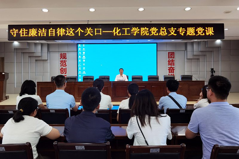 在区检察院报告厅,化工学院党总支书记孟龙以《守住廉洁自律这个关口》为题,为全体党员干部讲了一节专题廉政党课。他指出,共产党员一定要守住廉洁自律这个关口,唯有将“廉洁乃为政之魂,勤政乃公仆之本”的政治品格坚守到底,将“勤廉者平安一世,贪婪者自毁一生”的警训牢记于心,才能做到心底无私天地宽,只留清气满乾坤。
