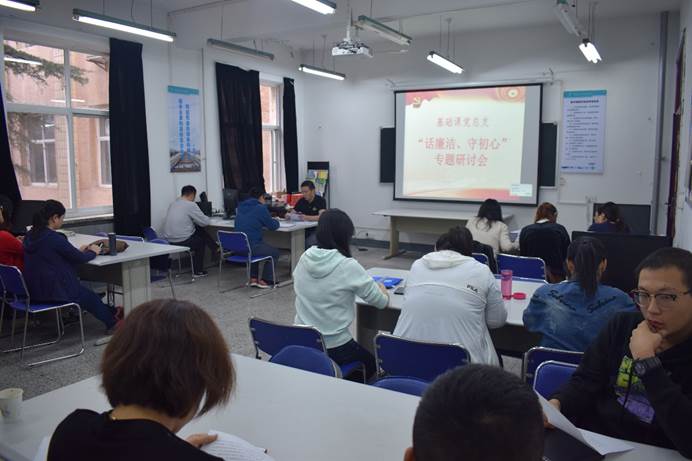 活动伊始,权华向全体党员强调了本次专题研讨的重要性,并要求全体党员以“话廉洁、守初心”为主题开展研讨,追寻初心原点、探讨初心内涵、检视廉洁风险、增强廉洁意识。基础课党总支副书记杨文革同志将个人学习和整改相结合,率先进行研讨发言,各位党员紧随其后分别进行个人研讨发言。