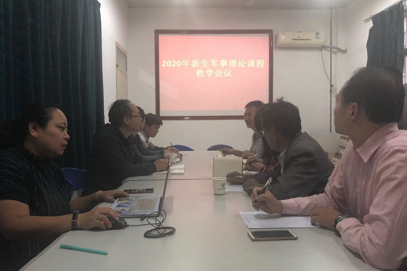 根据学院安排,将于10月开展新生入学教育工作及新生军训。为确保我校新生入学教育与军事理论课的效果,增强教育内容的规范性、科学性,9月27日下午体育部部长王茂利对全体军事理论课教师进行了课前培训会议,具体要求如下:各教师需认真备课,重点将课堂思政融入到本次教学中,要具有较强的使命感和责任感,师德高尚,爱岗敬业,给学生上好大学的第一节课,帮助学生掌握基本军事技能和军事理论,增强国防观念、国家安全意识,加强组织性、纪律性,弘扬爱国主义、集体主义和革命英雄主义精神。
