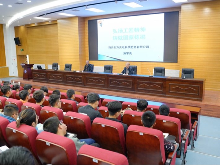 为弘扬“工匠精神”,厚植匠心文化,把工匠精神融入教育教学的每一个环节,敬畏职业、追求完美,实现突破创新,发挥工匠精神在社会主义核心价值观教育中的资源优势和引领示范作用,智能制造学院举办“大国工匠进校园活动”首场讲座。西安北方光电科技防务有限公司高级工程师,加工中心高级技师,全国技术能手,中国兵器集团公司关键技能带头人,西安工匠施军良应邀作报告。智能制造学院党总支书记白福民、副书记沈博、学生科科长樊英鸽、专兼职辅导员和600多名学生聆听报告,副书记沈博主持报告。