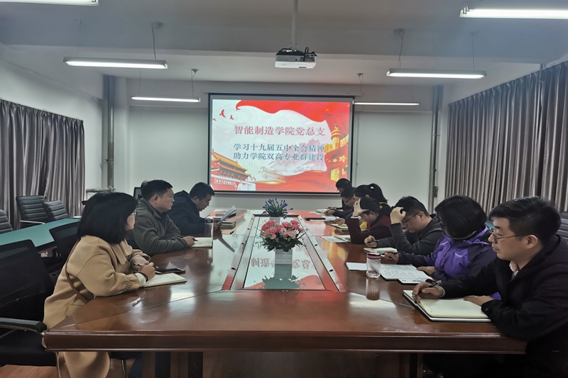 11月5日下午,智能制造学院党总支成员及所有党支部书记在10-305学习十九届五中全会精神助力学院双高专业群建设,会议由党总支书记白福民同志主持。