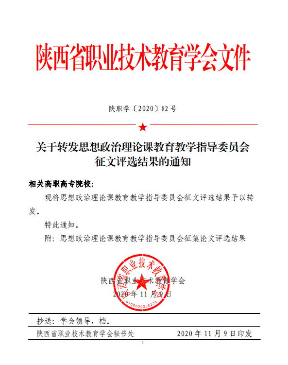 为了深入学习贯彻习近平总书记来陕考察重要讲话精神,进一步传承延安精神、西迁精神、梦桃精神及全国人民在抗击新冠肺炎疫情中所表现出的舍身忘己全力以赴的精神和家国情怀,着力推进陕西高职院校理论研究和思政课教学质量再上新台阶,思想政治理论课教育教学指导委员会组织开展了“贯彻习近平来陕考察讲话精神,推进新时代高职思政课改革创新”为主题的征文活动。征文对象为从事思想政治理论课教育教学的专兼职教师,征文时间为2020年5月31日至 9月10日,每所院校推荐3-5篇论文。