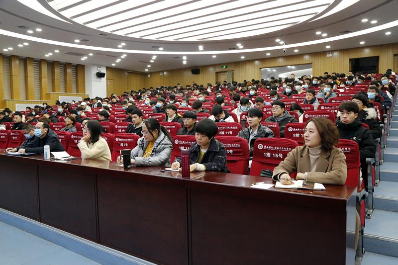 在活动中,明培尧主任以案说法,通过对大学生挂科、网络直播打赏、交通事故等一系列与大学生现实生活密切相关案例的讲解引起大学生对学习法律知识、培养法治思维的重视。谭飞法官随后做了关于《与法同行,律动青春》的讲座报告,讲述了宪法的发展进程、宪法的地位以及宪法在现实中的意义,谭飞法官通过案例详细阐释了平等权、知情权、隐私权的法律内涵以及学生在就业过程中可能面临的相关法律问题。整个活动过程中,同学们热情高涨、全神贯注。