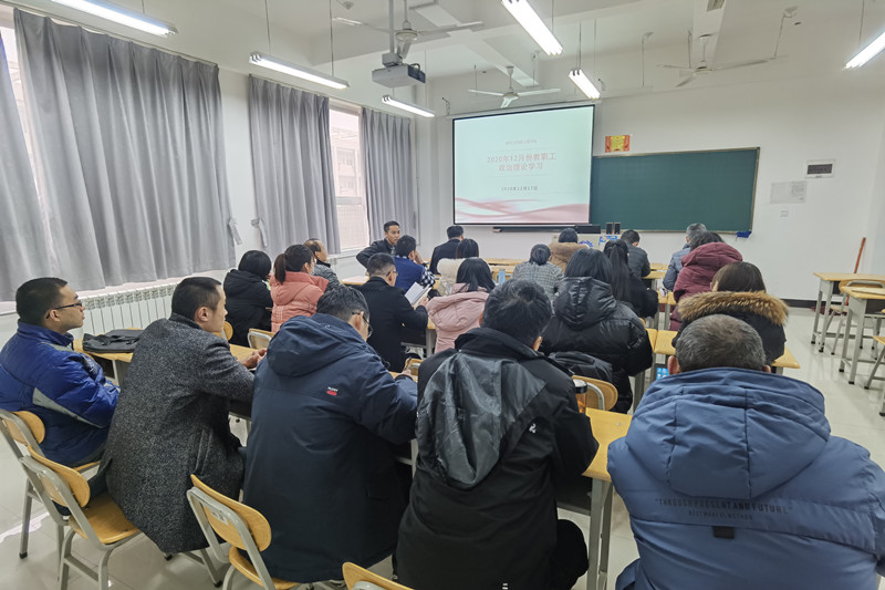 【建筑与热能学院党总支】按照陕国职党宣〔2020〕12号文件《关于2020年12月份组织活动暨教职工政治理论学习安排的通知》要求,建筑与热能工程学院于2020年12月17日下午在教4-340召开了教职工政治理论学习会议,会议由党总支书记强卫印主持,全体教职工参加会议。会上,强卫印带领大家观看了《解读党的十九届五中全会公报》《中共中央关于制定国民经济和社会发展第十四个五年规划和二〇三五年远景目标的建议》等相关视频。随后,强书记强调,今年是十三五的收官之年,也是十四五的启动之年,全体教职工要始终坚定共产主义的理想信念,坚持以习近平新时代中国特色社会主义思想为指导,全面贯彻党的基本路线和教育方针。坚持以教学为中心,以师资队伍建设为根本,以专业建设为龙头,以校企合作为核心,以提高社会服务水平,服务地方经济建设为重点,以强化管理为手段,以加强和改进党建与思想政治工作为保证,树立争优意识、特色意识,认真做好我院的各项教育教学工作。会后,与会教职工表示一定会贯彻落实十九届五中全会会议精神,制定个人十四五工作计划,为我校职业教育改革贡献一份力量。