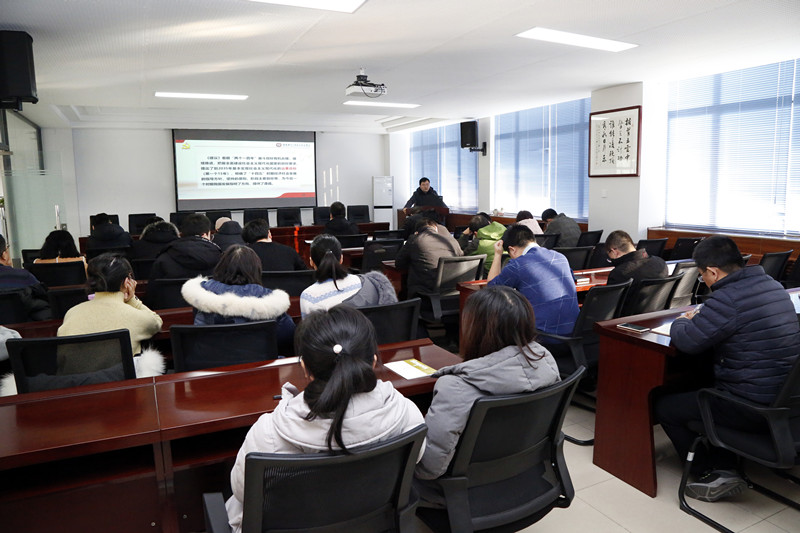 【经济管理学院】2020年12月29日下午,经济管理学院党总支在5-604召开12月份教职工理论学习,全体教职工参加了本次学习,会议由党总支书记王文雅主持。王文雅解读了十九届五中全会公报,并带领大家学习了习近平总书记在浦东开发开放30周年庆典讲话和全面依法治国法制思想的形成。通过学习大家了解了党的十九届五中全会的重大意义,2035年实现社会主义现代化的远景目标和“十四五”时期我国发展的指导方针、主要目标和重点任务,了解到浦东30年来艰辛的发展历程,了解到全面依法治国的重要性,为日后的工作指明了方向、激发了热情,随后全体教职工集中观看了视频《十三五巡礼》。王文雅要求大家深入学习十九届五中全会精神,深入了解中央未来五年乃至15年的政治方向,解读国家政策,理解国家走向,做好本职工作,为建设社会主义现代化国家奉献自己的力量。