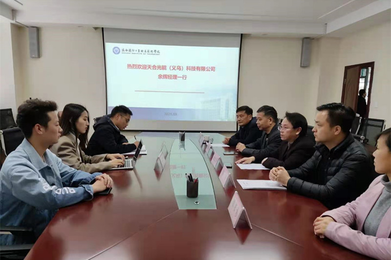余辉经理介绍了天合光能公司的最新发展情况,同时感谢学校领导的信任,并对我校的人才培养质量给予了高度的肯定和赞扬,希望可以与学校携手共进,共同培养一批高素质、高技能的技术人才。