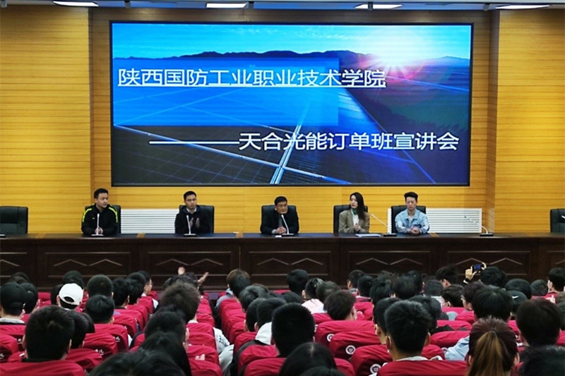 宣讲会现场氛围热烈、掌声不断,同学们对本次成立的订单班表现出了浓厚的兴趣。通过本次宣讲会,同学们对太阳能光伏行业有了更深一步的认识,同时也加强了学校与企业的联系,为进一步深化校企合作,建立实习实训就业基地打下了坚实的基础。