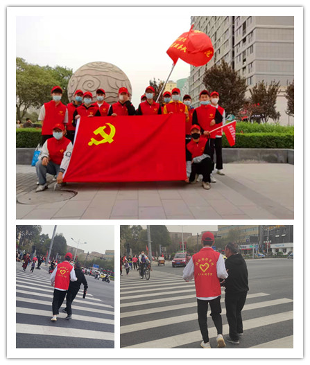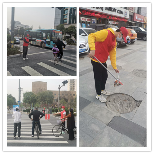 活动中,志愿者们身穿红马甲,头戴小红帽,手持小红旗,他们分别在马路四个方向的斑马线两端开展交通秩序维护,提醒行人遵守交通规则,莫闯红灯,扶助老人、儿童安全过马路。在志愿服务活动中,对乱闯信号提示灯、横穿马路时低头玩手机或嬉戏打闹等不文明、不安全行为作出提醒,劝导非机动车按规定车道行驶,对非机动车和行人横穿马路、违反交通信号灯等不文明交通行为及时进行制止;提醒驾车人员严守交规、礼让行人。志愿者文明执勤,热情服务,赢得了过往市民的大力称赞。