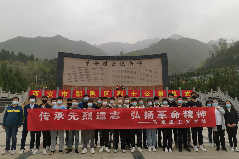 为缅怀革命先烈的丰功伟绩,寄托对革命先烈的无限哀思,弘扬革命先烈的崇高精神,引导教师和青年学子学习革命先烈英勇事迹,继承先烈遗志,凝聚奋进力量, 3月30日下午,我校马克思主义学院组织思政课教师和学生共计30人,前往西安市鄠邑区金南山烈士陵园开展“传承先烈遗志 弘扬革命精神”清明祭扫活动,祭扫活动由马克思主义学院办公室主任皮睿主持。