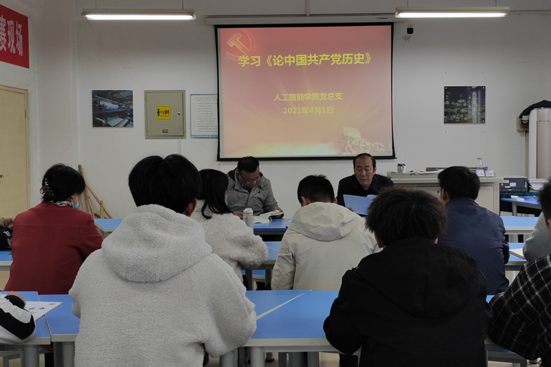 根据陕国职党发〔2021〕6号《关于印发《开展党史学习教育实施方案》的通知》。人工智能学院于04月01日下午16:30在8-208开展全体党员第一次党史学习,会议由人工智能学院党总支书记张双琦主持,人工智能学院院长姜鑫和全体教工党员、学生党员出席了本次会议。