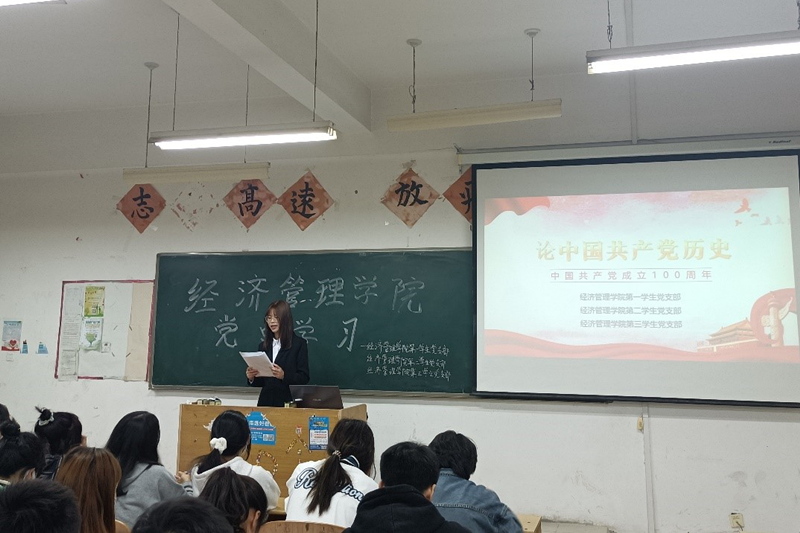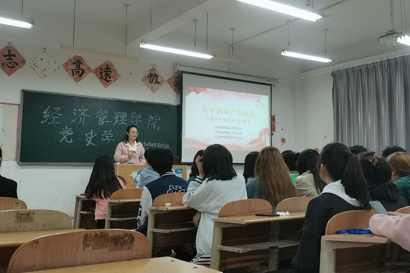 2021年4月9日经济管理学院学生党支部开展了“学党史,明信念,跟党走”主题教育活动系列党史学习(一)相关活动。经管学院全体入党积极分子参加,学生第二党支部书记赵飞燕老师主持该活动。