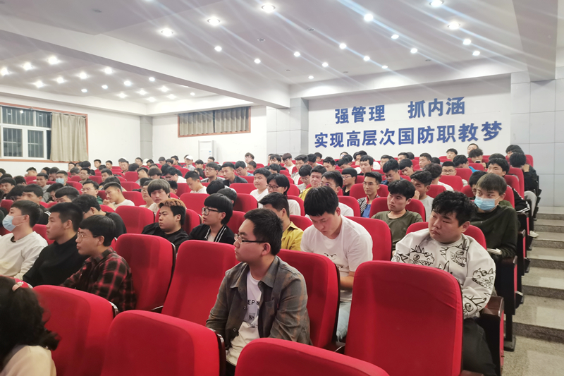 为庆祝中国共产党成立100周年,响应党中央、国务院的号召,服务“军民融合”国家战略,培育和弘扬工匠精神,培养学生树立坚定理想信念,引导学生积极践行社会主义核心价值观,自觉养成职业道德和职业精神,努力实现自身全面发展。2021年4月29日晚7:00,由招生就业处主办,智能制造学院承办的“迎建党百年,促就业新篇”就业创业服务月系列活动——优秀校友报告会在教二报告厅成功举办。本次报告会,邀请了西安北方光电科技防务有限公司装备制造五部副部长惠明回校做分享。报告会由智能制造学院学生科科长樊英鸽主持,智能制造学院大二学生以及多位老师参加了报告会。