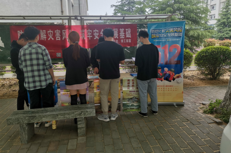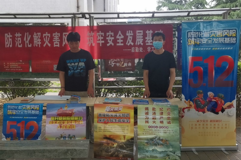 为增强广大师生灾害风险防范意识和能力,普及推广师生防灾减灾知识和避灾自救技能,提高各级综合减灾能力,最大限度地减轻灾害造成的损失。按照中共陕西省委教育工委办公室《关于做好2021年全省教育系统防灾减灾救灾工作的通知》要求,5月11日,后勤处、学工部联合组织开展了防灾减灾安全知识宣传活动。