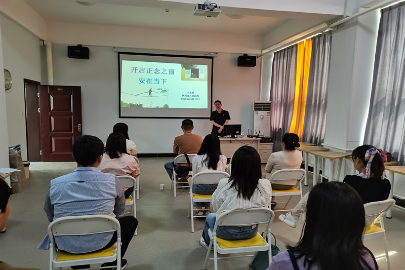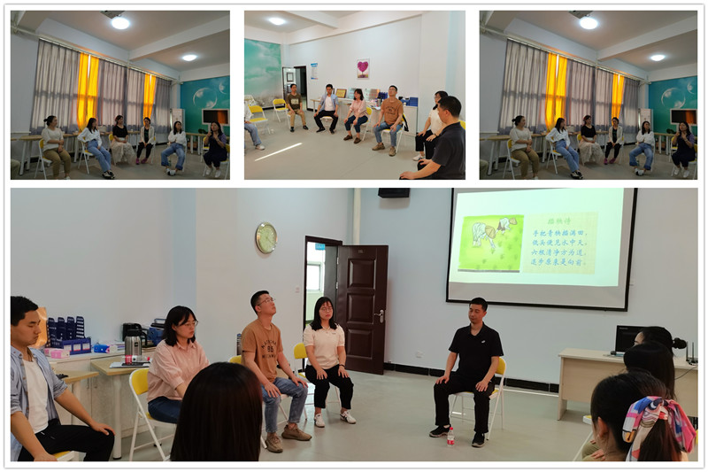 宋东峰大夫通过一则漫画小故事开始了主题为“安在当下——开启正念之窗”的培训活动。宋大夫通俗易懂地向大家系统介绍了正念知识以及日常正念练习的方法与要点,正念作为一种广泛应用于心理治疗的科学技术,它的精髓在于引导人们正念就是有目的的、有意识的,关注、觉察当下的一切,而对当下的一切又都不作任何判断、任何分析、任何反应,只是单纯地觉察它、注意它。在宋大夫的悉心指导下,参加培训的老师通过正念呼吸觉察、正念行走和全身扫描体验等体验练习,充分感受和学习到了正念这一便于操作的情绪及压力管理技术。