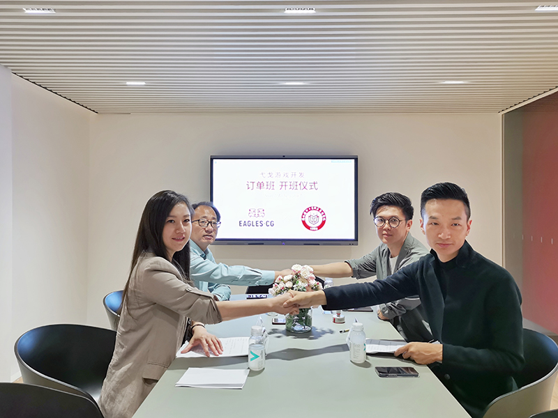 仪式最后,管阳和李辉分别代表校企双方签订《“弋戈游戏开发”订单培养协议》。