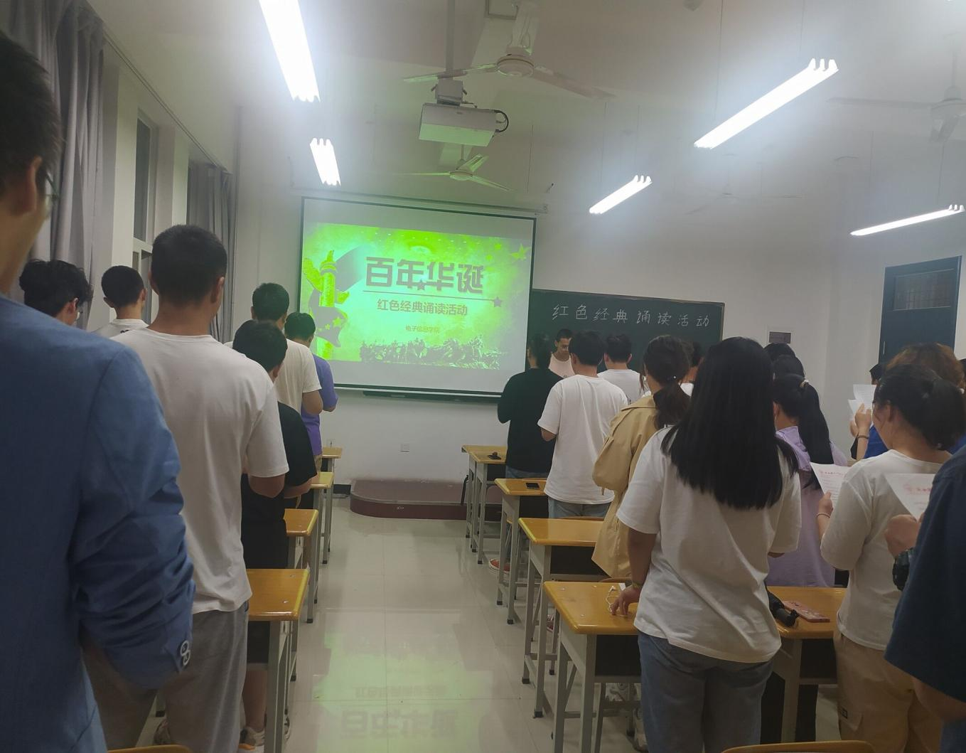 伴随着或悠扬舒缓或铿锵有力的背景音乐,一首首饱含深情的经典诵读引发了强烈的情感共鸣。5月27日下午,为庆祝建党100周年,电子信息学院在4-323举行红色经典诵读活动,重温党的光辉历史、讴歌党的丰功伟绩,追忆红色岁月,坚定理想信念。