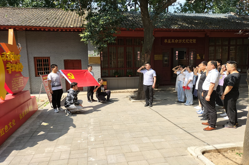党员们在讲解员的带领下先参观了郭沫若题写的碑文,走进辛垦革命历史纪念馆,了解辛垦小学从创立到迎接解放的历史,老一辈革命者一边教学,一边开展抗日救亡运动,他们坚定的共产主义信仰、为劳苦大众谋幸福的决心、为中华民族崛起不惜牺牲自己生命的勇气感染了每一位同志,激励党员们不忘初心,牢记使命,立足本职工作,在平凡的岗位做出不平凡的业绩。参观学习后,全体党员面对着鲜艳的党旗,举起右手,重温入党誓词。