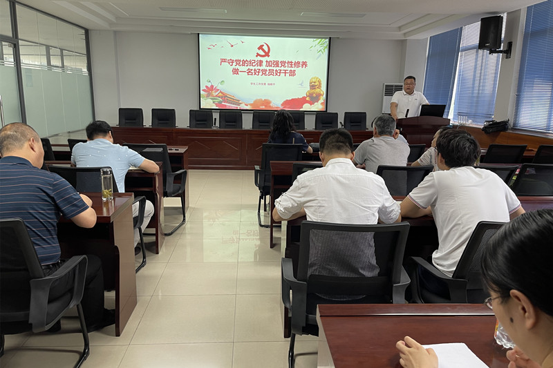 第一部分,杨晓平书记以《严守党的纪律加强党性修养做一名好党员好干部》为主题,为全体党员讲授党的纪律和廉政教育专题党课,围绕认清重大意义—坚定不移坚守党的纪律,加强党性修养—切实掌握党的纪律,坚持自省自勉—自筑违规违纪底线等内容,教育党员,特别是党员干部和重点岗位的工作人员,要加强党的纪律教育,要认识到党的纪律是党的政治建设的奠基石,是党内团结统一的粘合剂,是党员腐化变质的防火墙,具有极其重要的意义。随后,对全体党员提出三点要求:一是提高自我要求,注重自律自省,二是要注重理论武装,增强法纪意识,三是主动接受监督,保持政治本色,做一名廉洁自律的合格党员。
