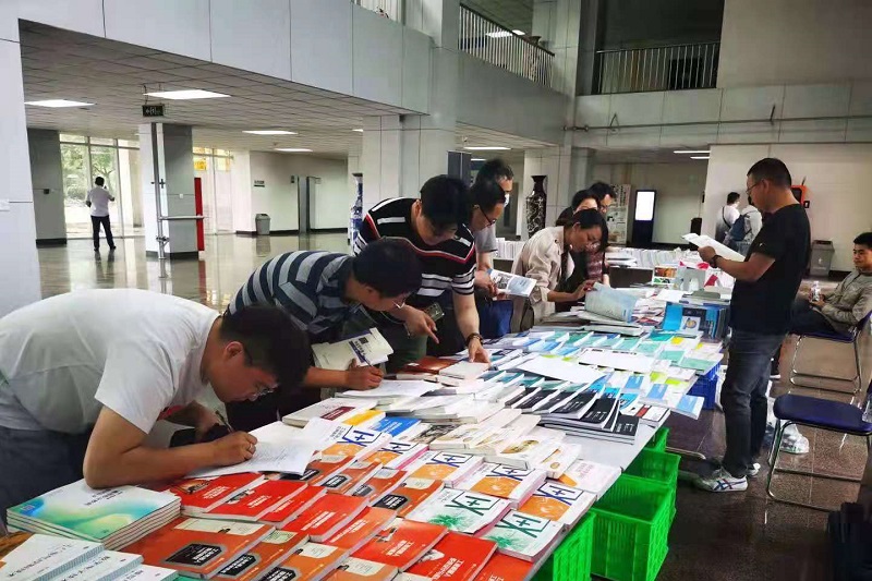 我校教师积极参与,在现场认真翻阅查看,主动与出版社方交流讨论,了解教材新动向。参展单位为教师免费赠送了部分样书,并采取预订方式为教师赠送样书,活动结束后将直接邮寄给教师。