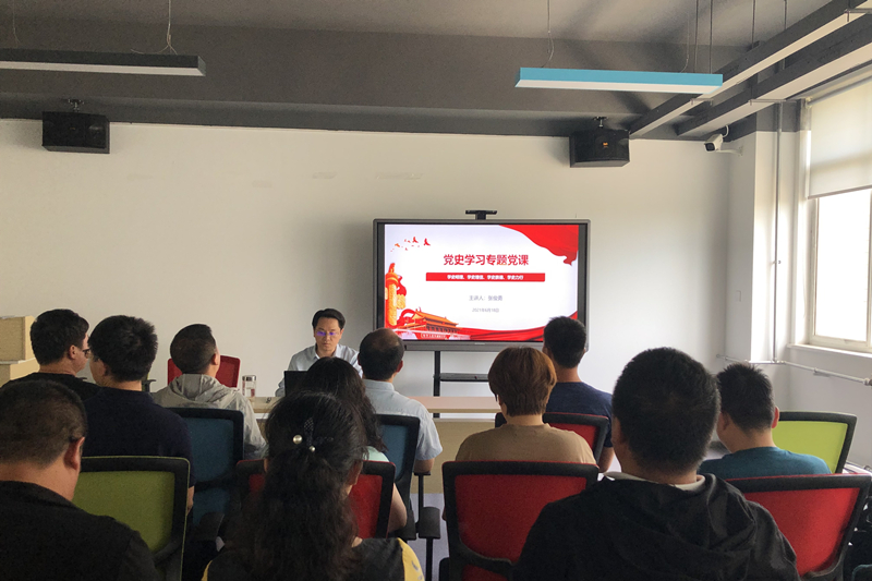 接着,教学服务党支部书记石雷为教学服务党支部全体党员开展学党史专题党课,从共产党的三大历史贡献、党的基本知识、党的光辉历史、党给我们的三大启示四个方面介绍了党的发展历程,明确了学习党史的必要性。