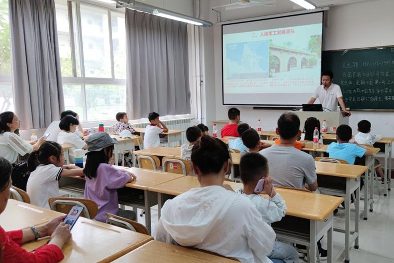 随后,我校宣传部思想教育科科长陈小刚老师给小朋友及家长上了一堂生动的国防科技发展历程讲座,受到了小朋友和家长的热烈欢迎。