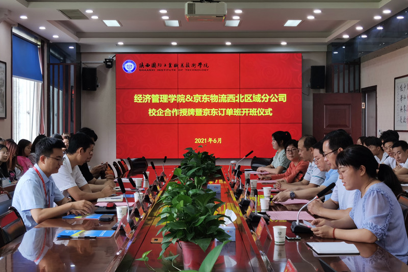 6月24日上午,我校与京东物流西北区域分公司校企合作授牌暨京东订单班开班仪式在北区图书馆第一会议室举行。京东物流西北区域分公司人力资源高级经理、校企合作总经理白光泽、人力资源部HRBP经理陈云鹏、京东物流集团X事业部事业部总监李轩、事业部经理满鹏飞,我校校企合作处处长张俊勇、经济管理学院院长严长远、副院长王珊珊、办公室主任李志春、现代物流管理专业负责人潘浩、教研室主任张玲燕及京东物理订单班50名学生参加仪式。仪式由王珊珊主持。