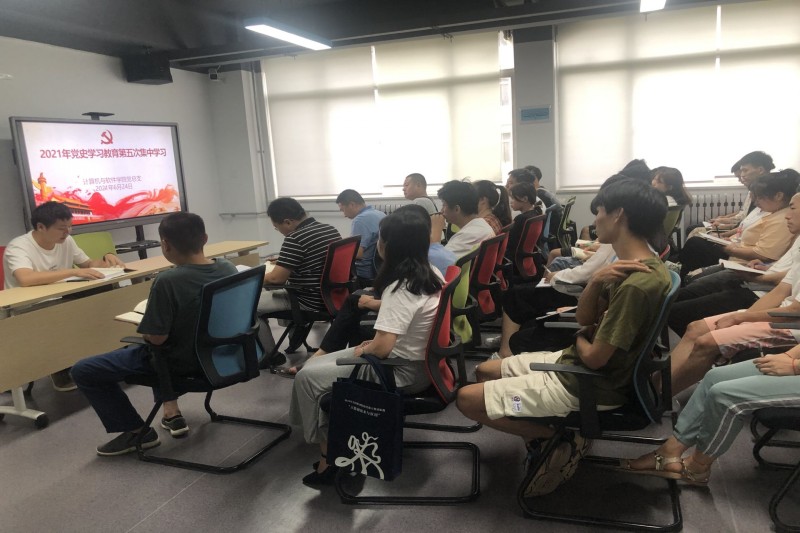 6月24日,计算机与软件学院党总支组织全体师生党员在腾讯云宣讲厅开展第五次集中学习,读《问答》、学党史,学习由党总支书记王勃主持。
