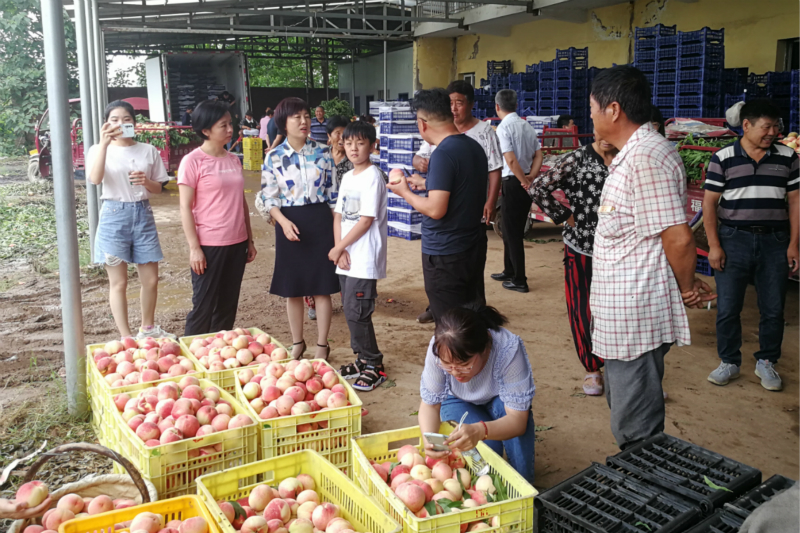 随后一行人来到保安滩村,在李夏妮和村长的带领下对该村的鲜桃产业链进行了实地调研,先后前往桃园和产品集散点进行考察,了解当地鲜桃的真实品质,现场电商团队成员表示可以为涝店街道鲜桃产业定制特色农产品销售服务,拓展销售渠道,助力涝店街道特色产业发展。