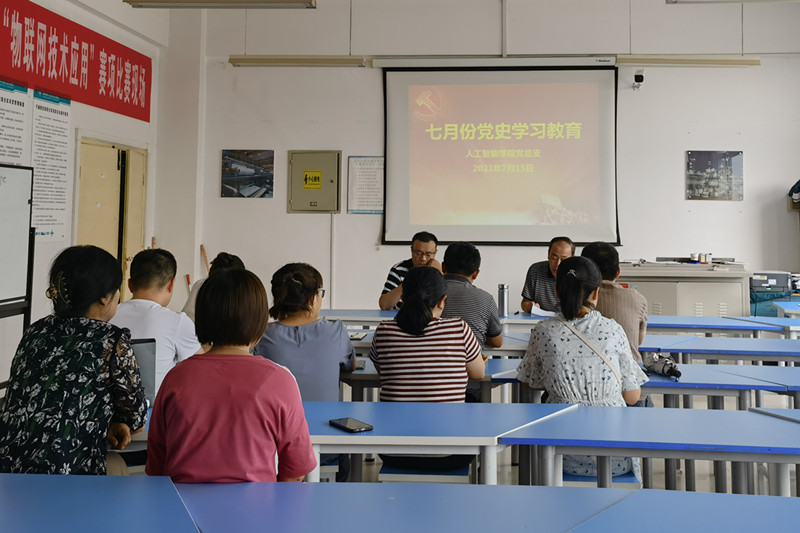 根据陕国职党发〔2021〕6号《关于印发《开展党史学习教育实施方案》的通知》人工智能学院于07月15日下午17:00在8-208开展7月份全体党员党史学习教育,会议由人工智能学院党总支书记张双琦主持,人工智能学院院长姜鑫以及全体教工党员出席了本次会议。
