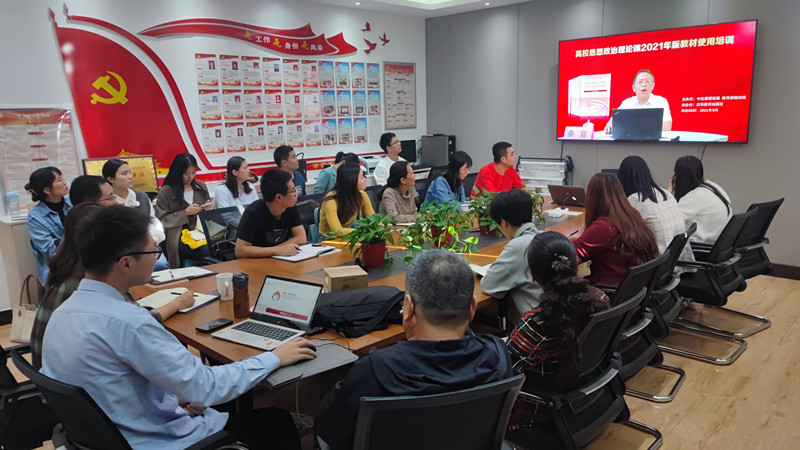 为帮助思政课教师更好把握《思想道德与法治(2021年版)》《毛泽东思想和中国特色社会主义理论体系概论(2021年版)》教材的基本精神和主要内容,马克思主义学院思修教研和概论教研室于9月28日下午2点、4点分别组织教研室专兼职教师在图书馆9-907和9-705办公室,参加了线上高校思想政治理论课2021年版教材使用培训会。